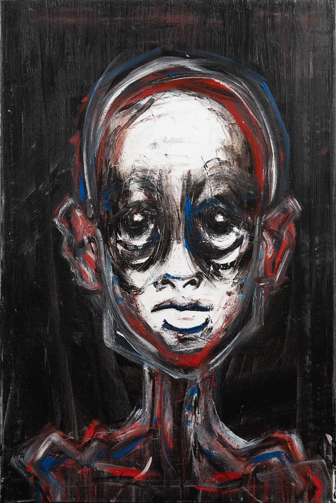 This painting was created in a single impulsive and improvised session, without a great deal of explicit intention as to what the result may be, beyond a portrait.