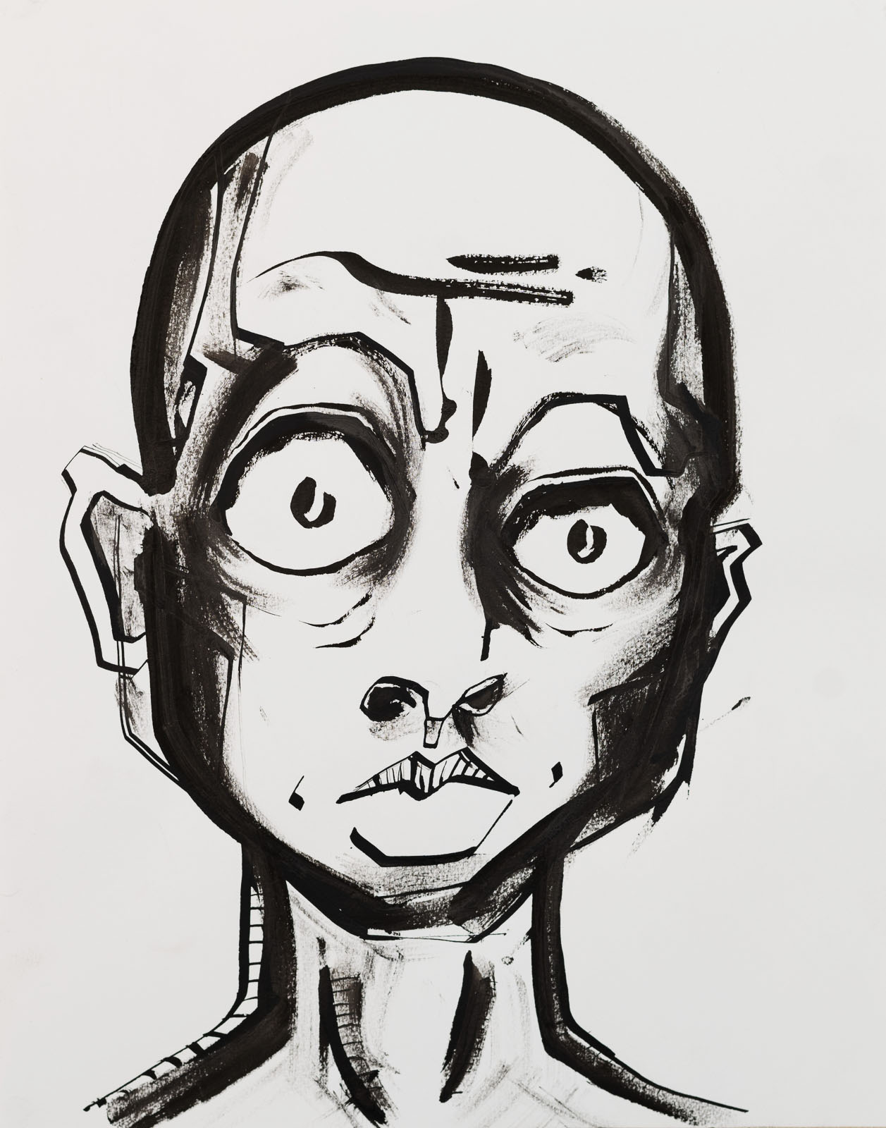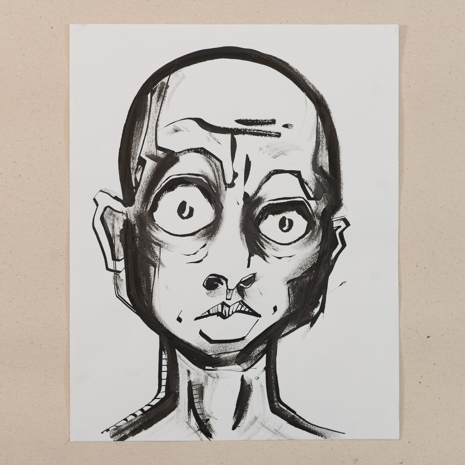 A stark portrait that captures the moment a thought turns into an echo. Its raw lines make the expression feel both unsettling and strangely familiar.